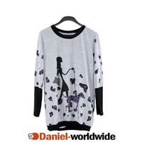Women's Round Neck Cat Pattern Knit Blouse Sw...