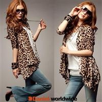 Women Leopard Blouse Casual Slim Irregular Ca...