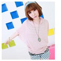Stylish Batwing Sleeve Two Pieces Stripe Hood...