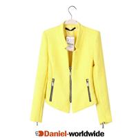 Women Stylish Zipper V-Neck Slim Small Suit J...